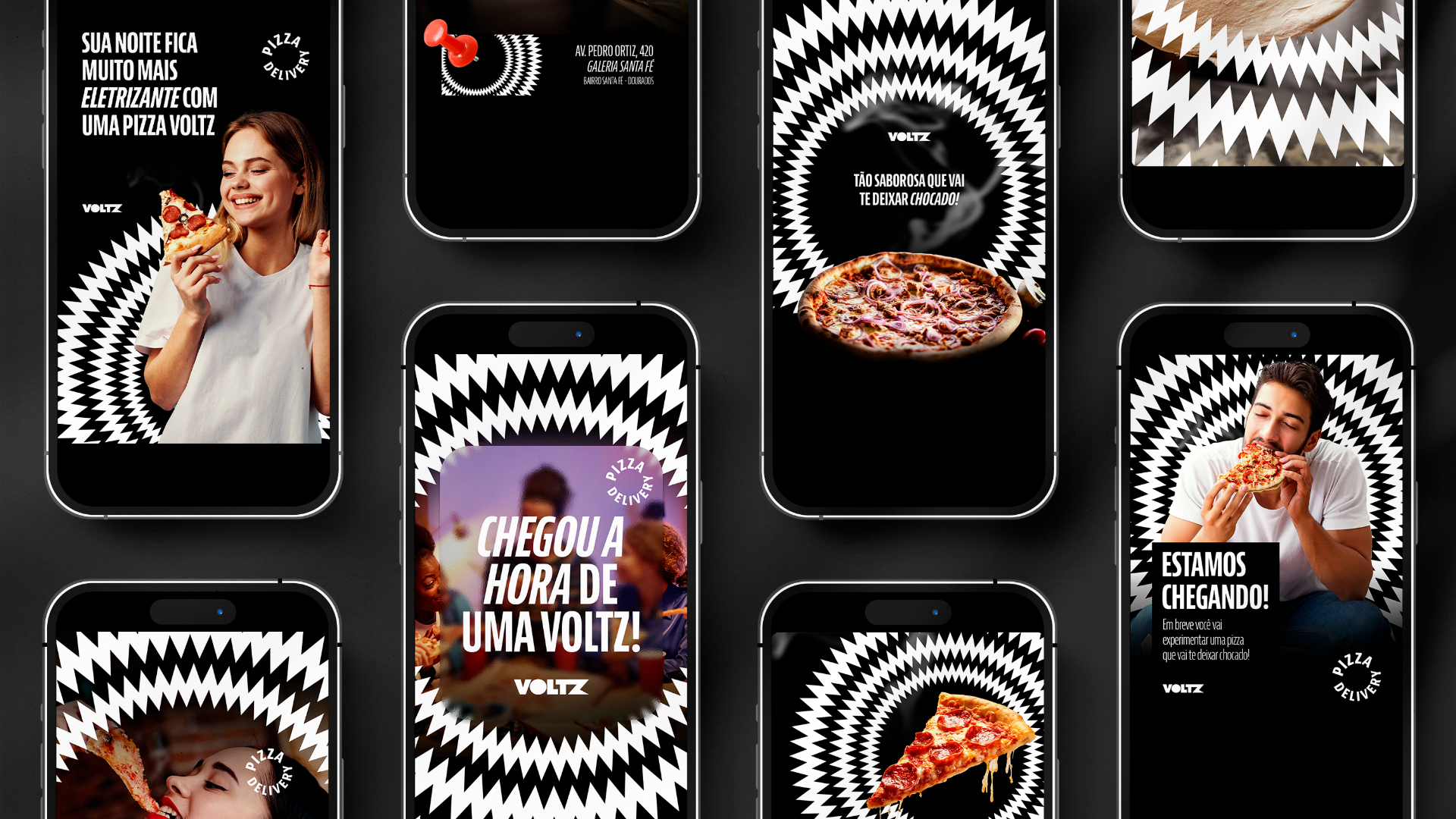 O resultado foi um impacto real no mercado local, destacando a VOLTZ entre pizzarias que seguiam padrões visuais previsíveis e repetitivos. A VOLTZ é rápida, dinâmica e moderna. Uma marca feita para te deixar CHOCADO.